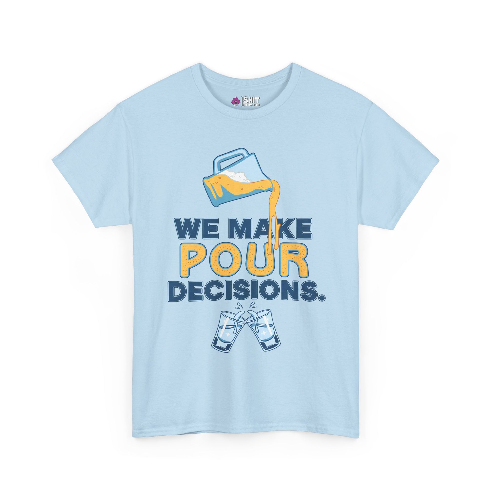 The We Make Pour Decisions tee is a stag do classic built for lads who fully accept that alcohol will be in charge. Featuring a bold beer pour graphic and a painfully accurate slogan, this shirt sets expectations early and excuses behaviour later.